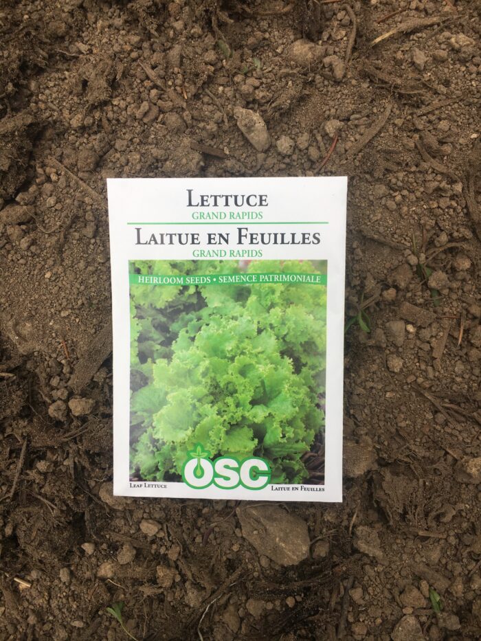 leaf lettuce (Grand Rapids), one package spread over two east/west rows on either side of the garlic rows behind the house