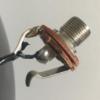 I spent a day first looking for replacement hex nuts1)It took me a while to find the likely specs of the nut in question! but as I was concerned about getting it right, and given the cost and inconvenience in the COVID world, I decided to just replace the whole jack. The guitar, a gift from my brother many, many years ago, probably could do with a new jack; it didn’t seem to be grounding properly, at least, that’s what I assume from the buzzing sound I got when I wasn’t touching the strings.
